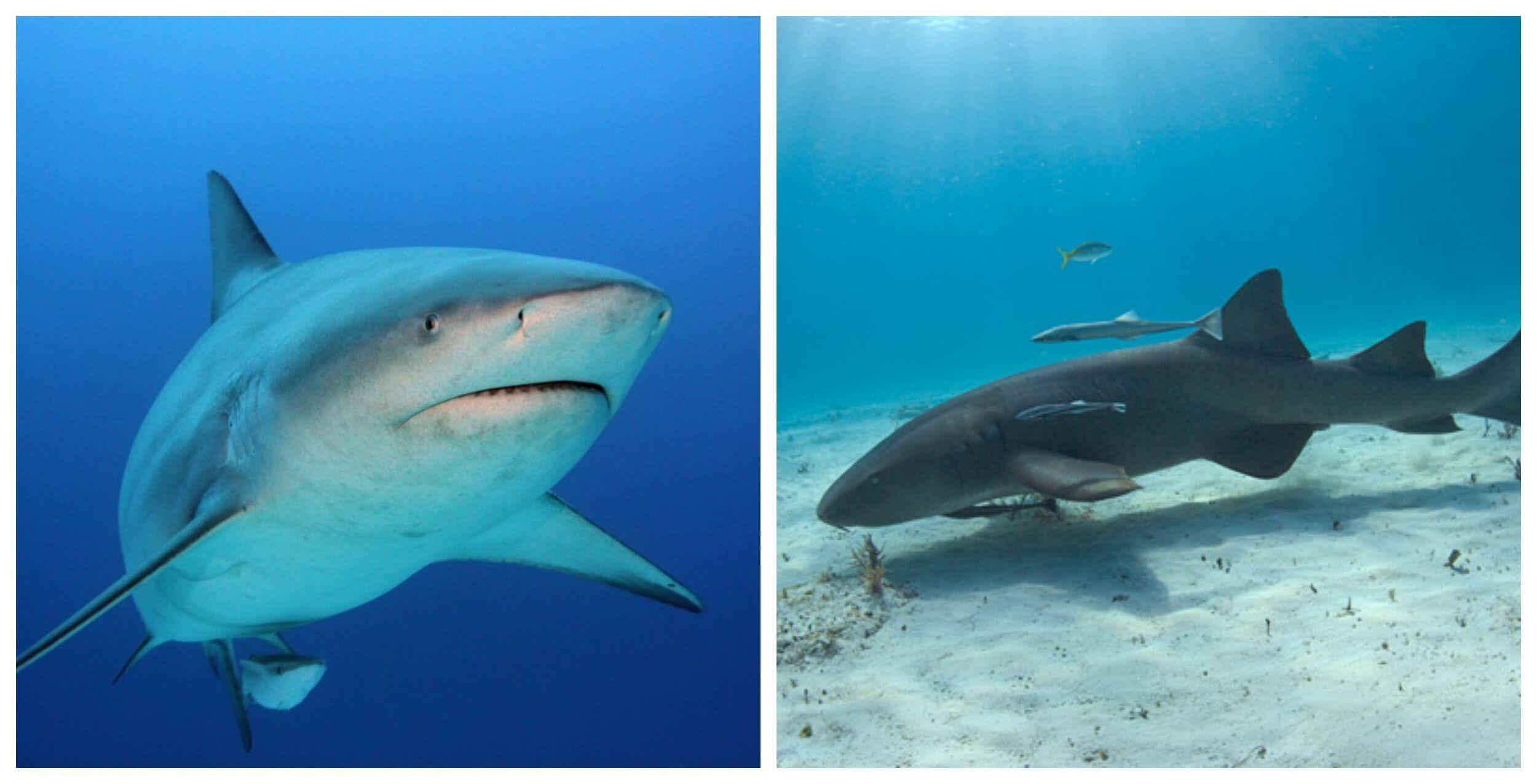 After a short break, we roll into the water for a second dive. Again I see many multi-coloured fish and a turtle whizzes by. Then I hear the clanging sound of a knife against an air tank, the dive master is trying to get our attention. I scan the water until I see him. He signals we should get out of the water and points to the distance. Following his finger, I see another SHARK! It’s not a nurse shark.