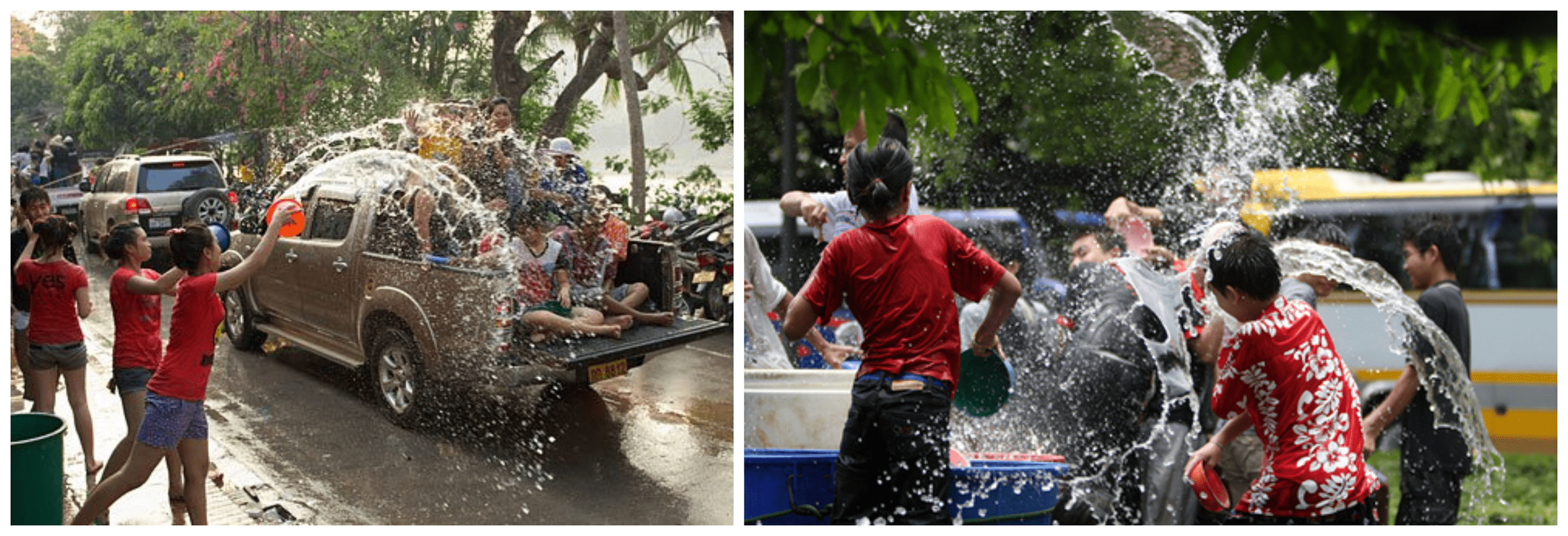 When I get downtown, the streets are lined with people jeering, dancing and drinking beer while emptying buckets of water onto a steady stream of pick-up trucks driving past at a footpace and loaded with people returning the downwash by scooping water from large barrels. I park my bike near my favourite pub and join a group of acquaintances who, despite the fact that it’s well before lunch time, are already very drunk. A warmish bottle of beer is thrust into my hands and I stand back to take in the scene. Suddenly I’m grabbed from behind, turned around and there’s a tongue squiggling in my mouth.
